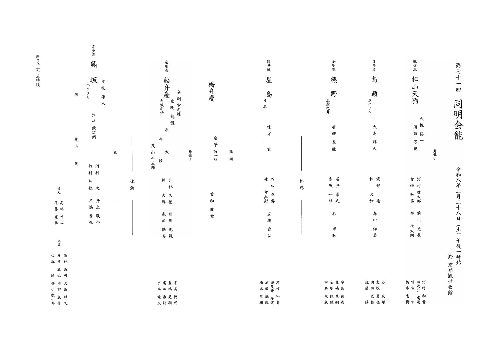 2026年2月28日(土)京都観世会館にて開催の第71回「同明会能」に出演させていただきます。